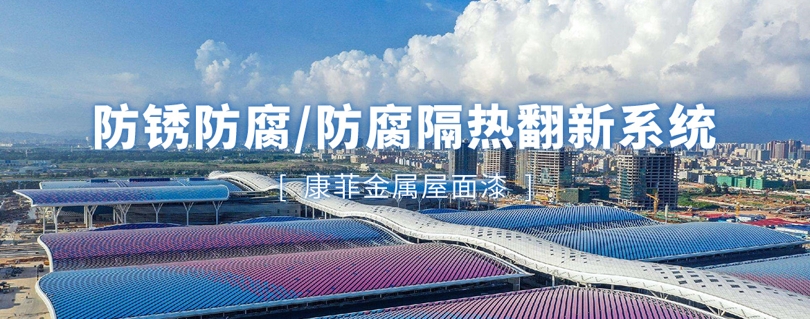 康菲CF-1002金属屋面无忧防锈防腐翻新系统,由创新科技水性自转锈漆和氟硅聚合物水性防锈防腐漆喷涂工艺组成。